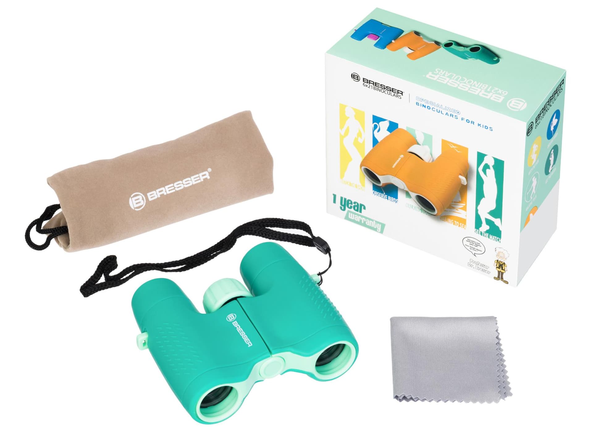 Affinché il nuovo binocolo per bambini sia ben protetto durante i viaggi, si riceverà una borsa abbinata con velcro, che si può attaccare alla cintura. Questo permette di estrarre il binocolo velocemente quando un animale timido passa di corsa. Se un po' di sporco entra accidentalmente nelle lenti, non è un problema. Si puliscono di nuovo molto rapidamente con il panno per la pulizia delle lenti. Il nostro mondo offre molto di più di quello che si può vedere ad occhio nudo. Dai un'occhiata da vicino con il binocolo per bambini Bresser Junior 6x21.