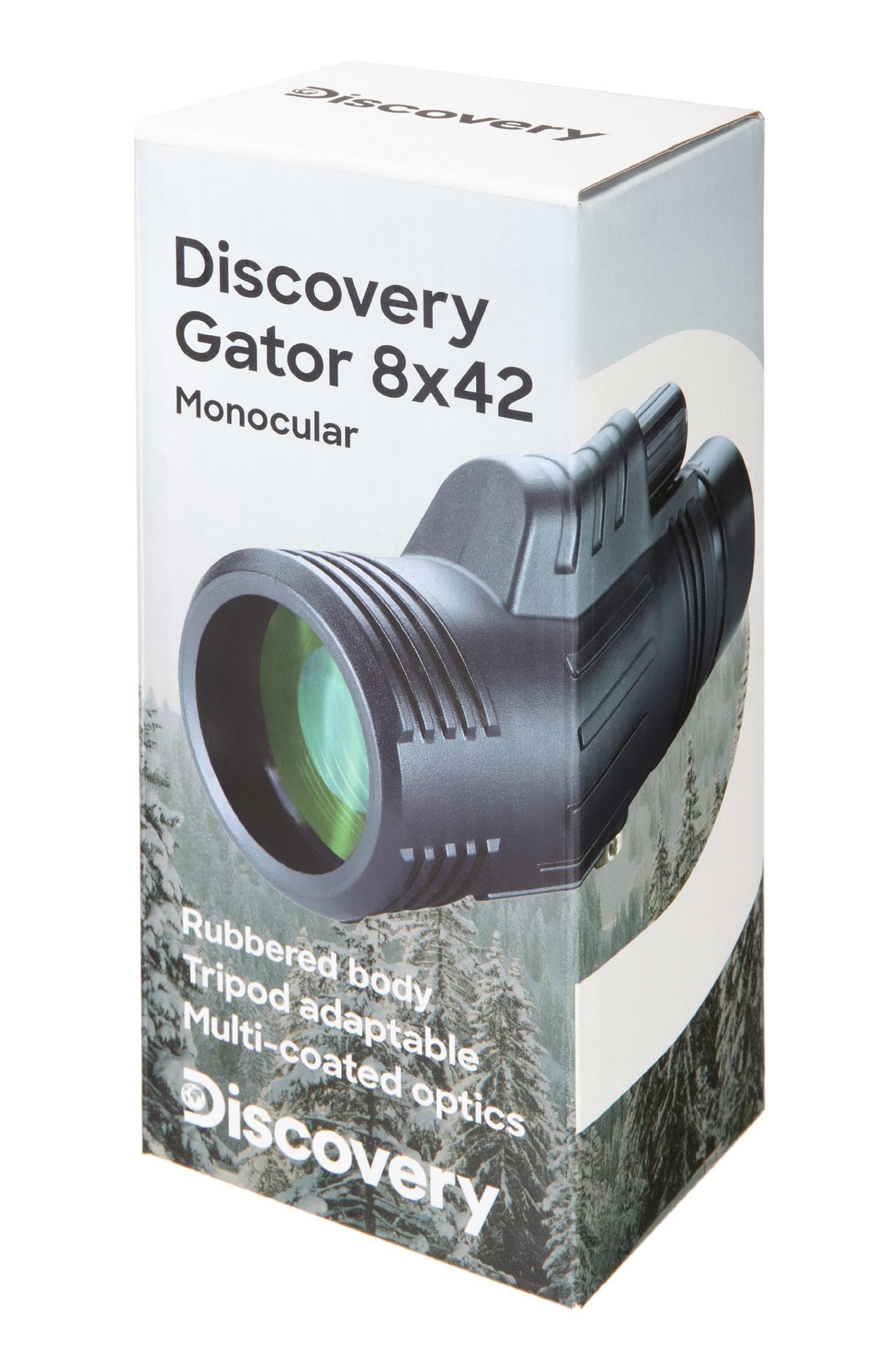 Il monoculare Levenhuk Discovery Gator 8x42 è uno strumento ottico con ingrandimento 8x. È compatto, leggero e dotato di ampio campo visivo. Questo monoculare è perfetto per qualsiasi tipo di osservazione all’aperto. Innanzitutto, consente di visualizzare gli oggetti distanti, inclusi i dettagli ben definiti. Secondariamente, è in grado di catturare un’area più ampia con un unico sguardo. Il Levenhuk Discovery Gator 8x42 è un’ottima scelta per cacciatori e amanti del trekking, così come per chi studia il comportamento degli animali selvatici e per chi pratica birdwatching.