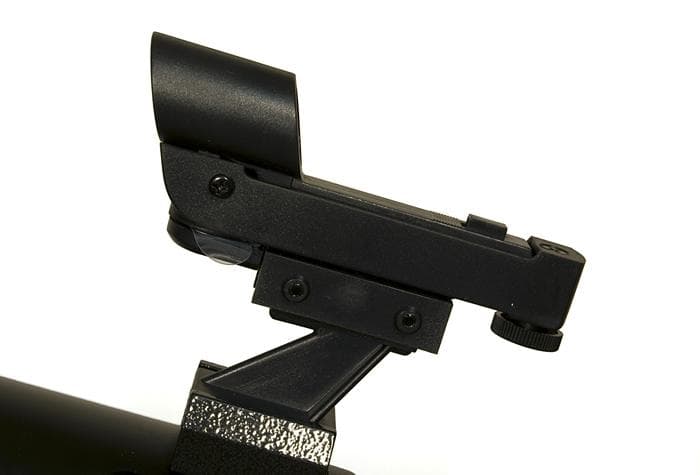 Le lenti e gli specchi hanno subito un trattamento FMC, che consente la massima raccolta di luce e ne aumenta la durata utile. Il tubo in alluminio, robusto e leggero, è impostato su una montatura equatoriale dotata di manopole di controllo a rallentatore. Inoltre, sulla montatura, è possibile installare il sistema equatoriale computerizzato (venduto separatamente). È dotato di cerchi graduati, che dopo una veloce regolazione, consentono di individuare gli oggetti in base alle loro coordinate celesti e di seguirli con un semplice giro di una manopola di regolazione equatoriale. Il treppiede, regolabile in altezza, ha un pratico vassoio portaoggetti dove è possibile riporre tutti gli oggetti in uso. Il mirino con cercatore a punto rosso consente di spostarsi rapidamente alla posizione desiderata. Il kit comprende oculari 10 mm (0,4 pollici) e 25 mm (0,98 pollici), con campo visivo di 52° rispettivamente dell’ingrandimento di 125x e 50x. Le lenti sono in vetro e hanno subito un trattamento FMC. La messa a fuoco del telescopio è facile da regolare, proprio come la collimazione dello specchio primario girando l’apposita manopola. Questo modello supporta oculari da 31,75 millimetri (1,25 pollici); in questo modo puoi utilizzare oculari acquistati separatamente, non solo quelli forniti con il kit, aumentando quindi l’ingrandimento alla massima potenza pratica di 180x. Il focheggiatore è dotato della filettatura a T standard, che consente di collegare una fotocamera SLR tramite un adattatore e utilizzare il telescopio per l’astrofotografia.
